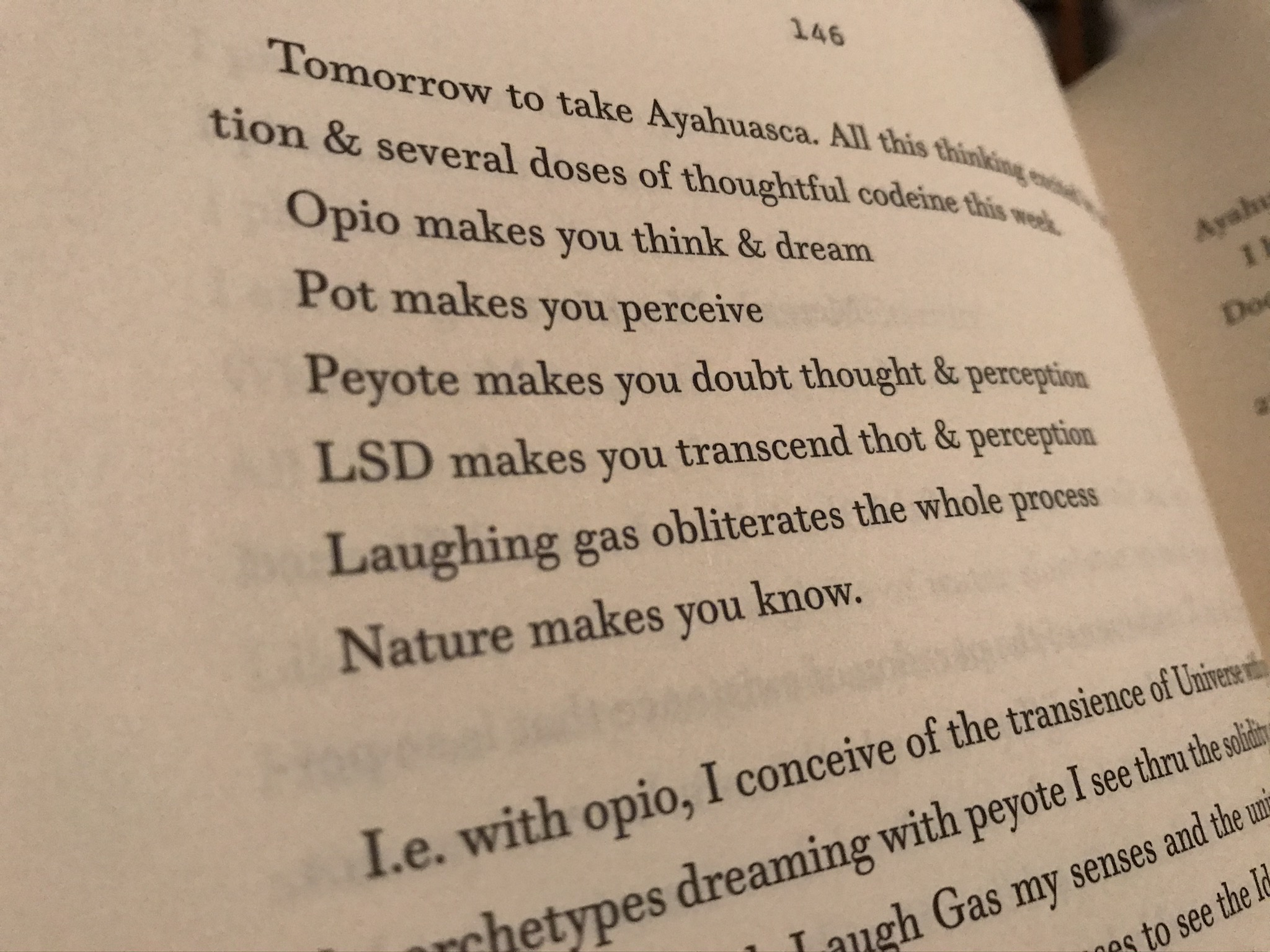 Perhaps the most constant thread throughout this collection is Ginsberg’s discussion with himself over what the universe is and whether or not there is only one universe. (He believes there isn’t.) His position on the nature of the universe and of reality changes often, but at one time states: