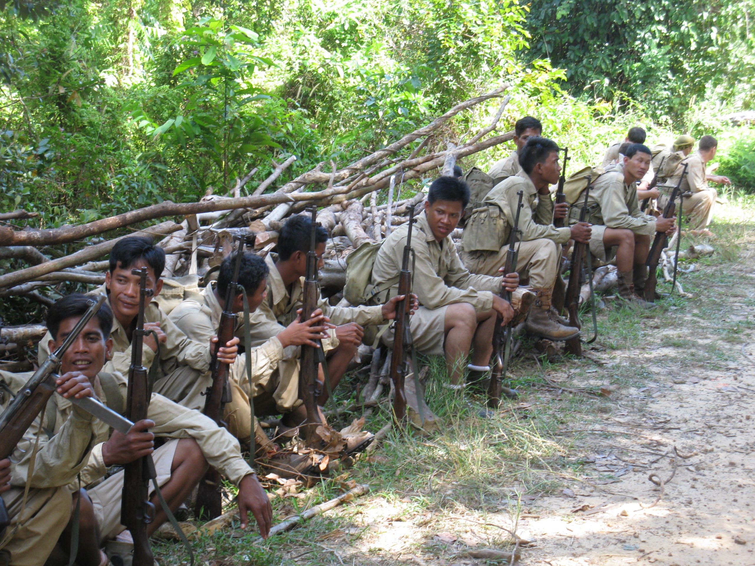 We filed off the bus to meet our new co-stars – the Cambodian Navy. Thanks to the impossibility of finding a semi-sober, non-obese, under-thirty Caucasian in Sihanoukville, this part of the script had been rewritten to include more “local” help. What the Cambodian Navy hadn’t been told was that they were actually playing the Vietnamese. No one dared tell them.