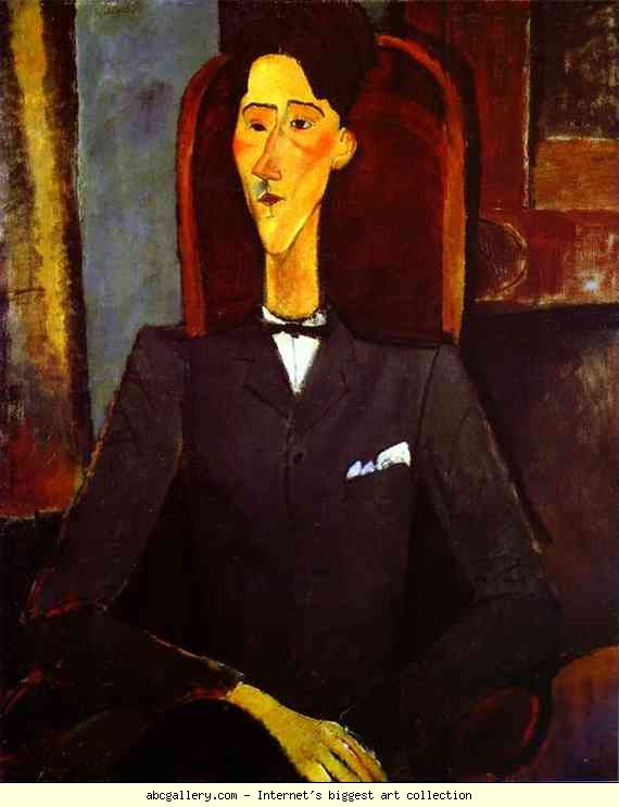 Modigliani’s portrait is soothing and elegant and presents the young, neatly-combed, well-dressed subject with eyebrows slightly askance sitting upright in a chair with hands serenely folded. He looks not unlike a young man sitting across from a lawyer or district attorney or influential uncle or Columbia dean.